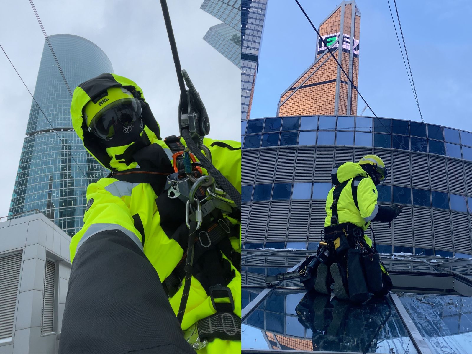 Третье важное свойство зимней экипировки для промышленного альпиниста – это его внешний вид, то есть цвет, форма и дизайн. Комбинезон должен быть заметным, чтобы выделяться на фоне снега, льда и зданий. Это прежде всего повышает безопасность, так как делает промышленного альпиниста видимым для других людей.