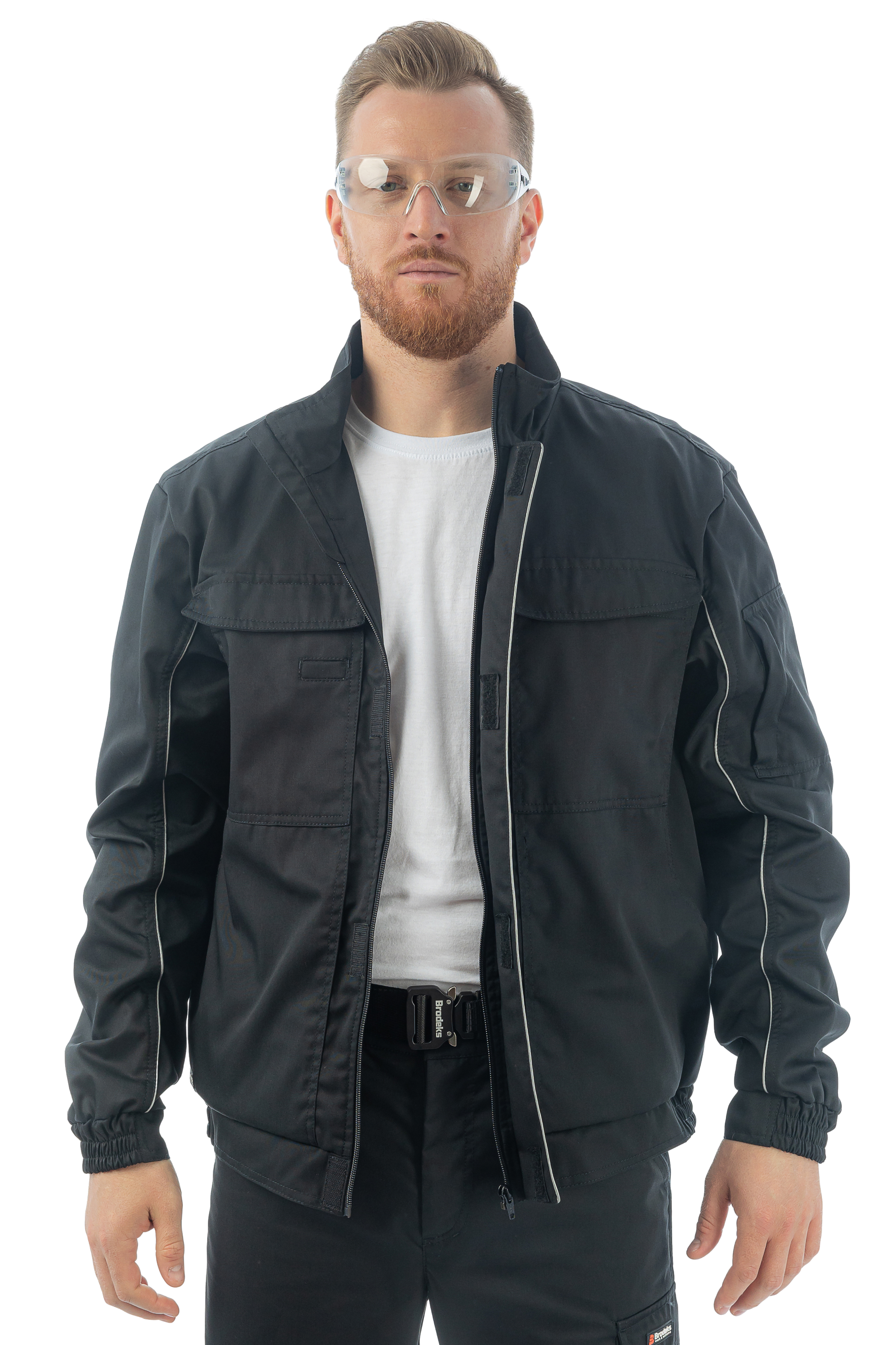 Состав ткани: 35% хлопок, 65% полиэфир, плотностью 210 гр/м2. Серия сочетает в себе высокую прочность и низкую плотность. Брюки и полукомбинезоны имеют свободную классическую посадку. Куртка имеет крой "Бомбер" , в ней нет кнопок, а все молнии закрыты планками - они не оставят царапин, если работа связана с дорогим оборудованием